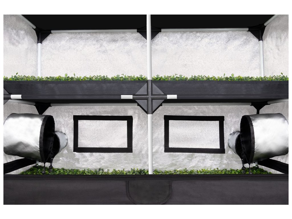 Prostorový pěstební stan je ideální pro předpěstování mladých rostlin v indoor podmínkách, včetně hydroponie i substrátových systémů. Umožňuje efektivní kultivaci velkého množství semenáčků díky své kapacitě a kvalitnímu odrazovému materiálu, který maximalizuje využití světla.