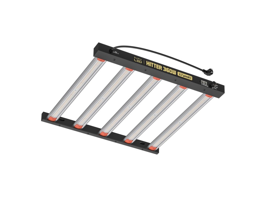 - LED SunPro HITTER 360W, LED 2.7 umol/J- full spektrum LED osvětlení od SUNPRO s vysokým světelným tokem PPF až 972µmol/s a účinnosti svítidla 2,7 µmol/J.